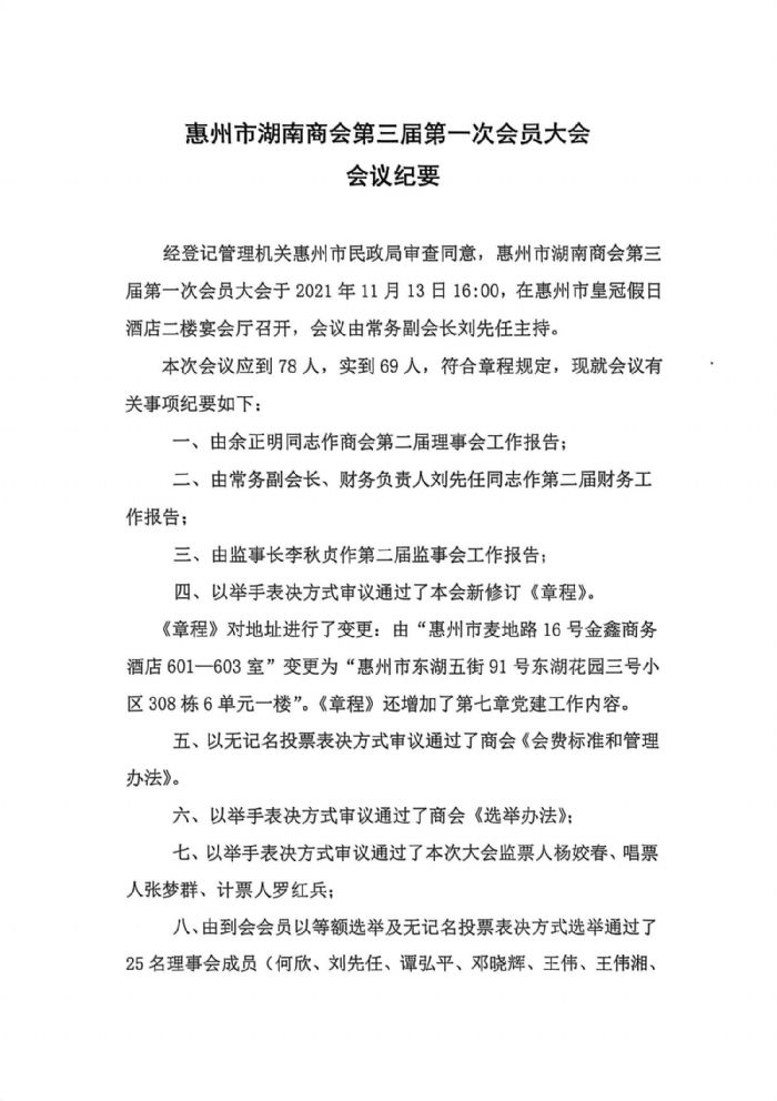 2021年11月13日,下午4点,惠州市湖南商会第三届第一次会员大会暨换届大会在惠州市皇冠假日酒店胜利召开!