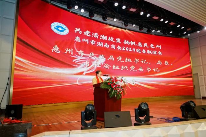 联谊会上,惠州市湖南商会何欣会长发表了热情洋溢的致辞,他代表惠州市湖南商会全体同仁对大家在百忙之中前来参加惠州市湖南商会2024年迎春晚会表示最热烈的欢迎!对长期以来关心支持我会发展的政府各级领导、社会各界朋友、会员兄弟姐妹表示最衷心的感谢!祝福大家身体康健,阖家幸福,新年快乐!