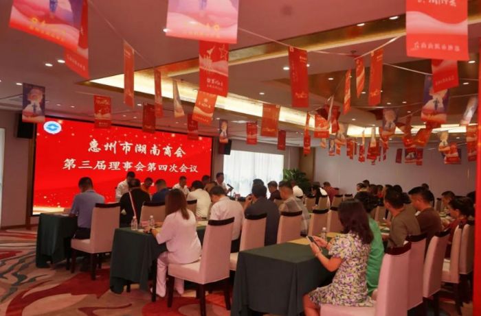2024年7月29日下午,惠州市湖南商会在惠州市涛景高尔夫度假村召开第三届理事会第四次会议。此次会议旨在回顾上半年商会工作情况,总结成功经验和不足之处,更好推动下半年工作的展开。